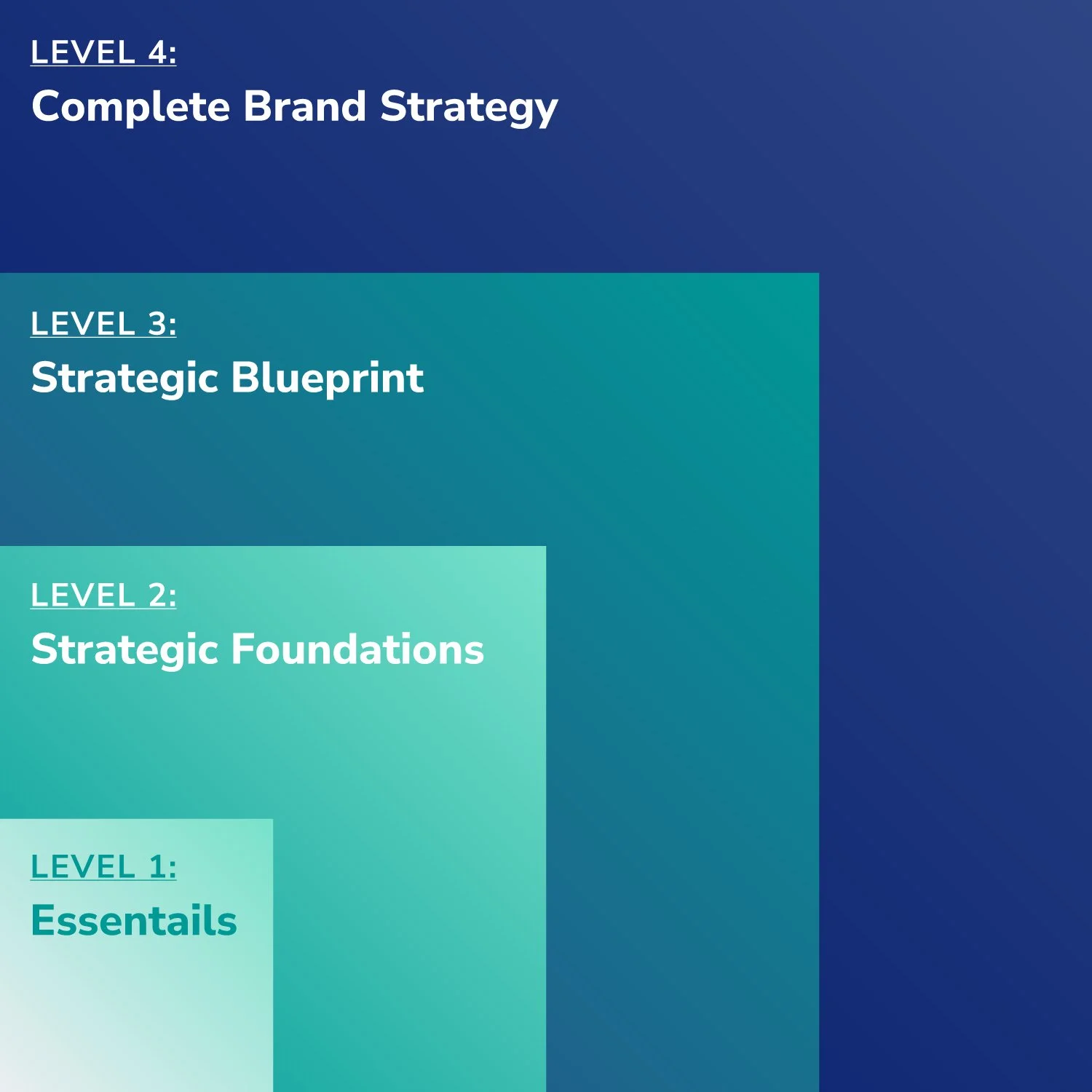 Most recently, I helped develop a new product line called the Qwerry Brand Framework. We’re still in the process of building this out, but so far, I built a visual model using geometric squares to represent the four tiers of service, along with: